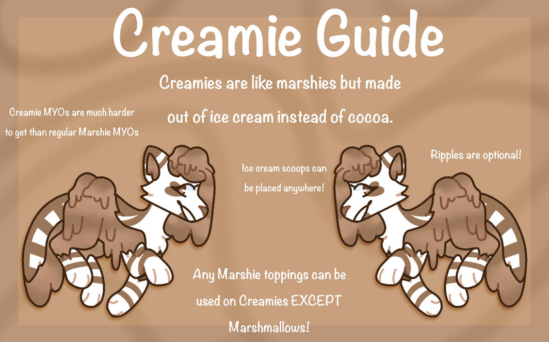Creamie MYOs and Potions (allows you to turn an existing Marshie into a Creamie) are both Event Exclusive items, making the sub-species a bit rarer than Marshies. Although, you can create and donate Creamie designs for us to raffle off for our Monthly Donated Design Raffles if you'd like! Make sure to check out the prompt here if you're interested!